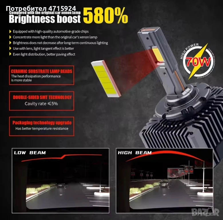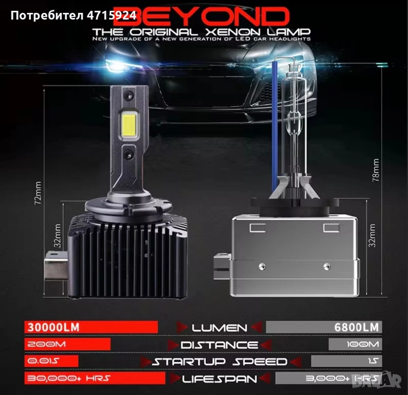 Продавам чисто нови, висок клас LED крушки D1S за директно вграждане. Заменят оригиналния ксенон, като осигуряват до 580% по-силна светлина.