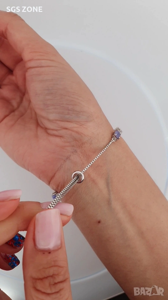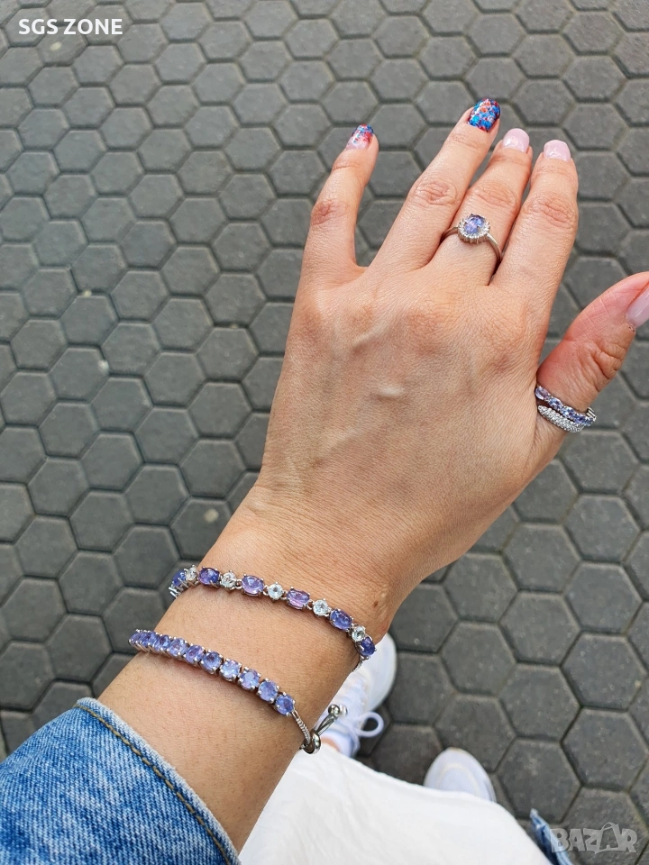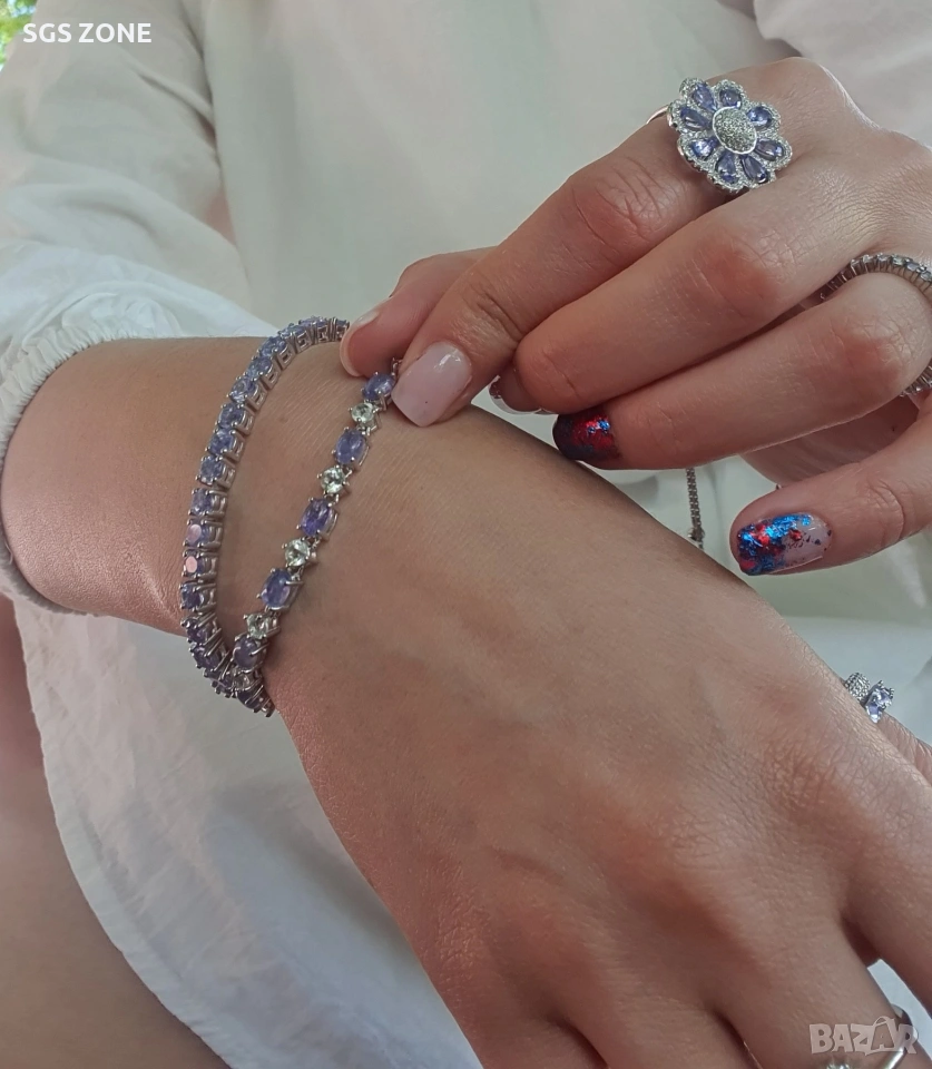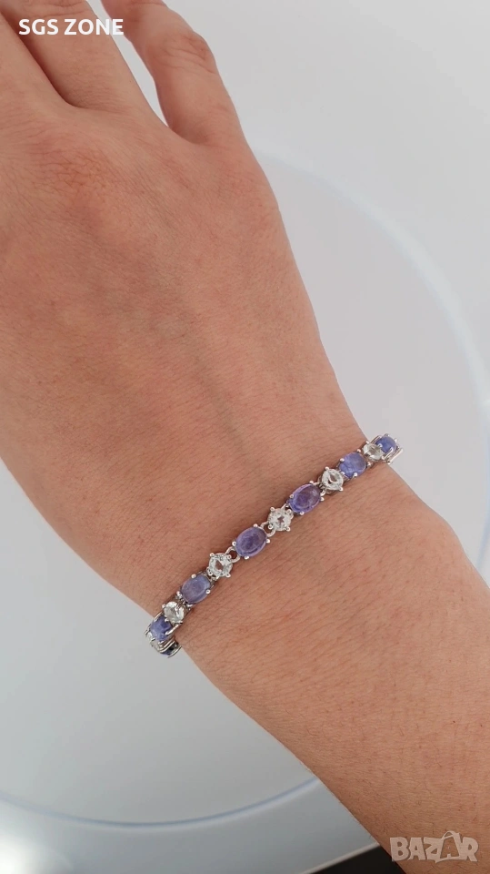 Нежна сребърна гривна с танзанит от Тайланд. Универсален размер. Още снимки и видеа на продукта в Instagram и Facebook sgs.zone, уебсайт sgs.zone. Можем да изпратим допълнителна информация чрез Viber. Изпращане Speedy и Эконт. Шоурум в София, Дондуков, 53. Всички продукти са със сертификати и подаръчна кутия. Продукти имат допълнителни български маркировки