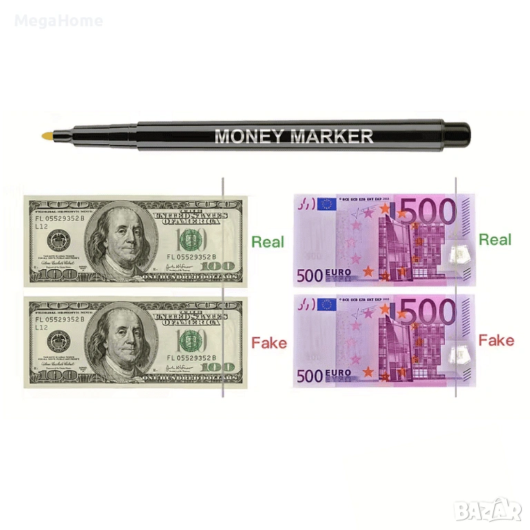 - Маркерът е много компактен и ефективен. За броени секунди проверявате истинността на парите. Ползвате го навсякъде и по всяко време и най-вече мастилото е абсолютно безвредно.