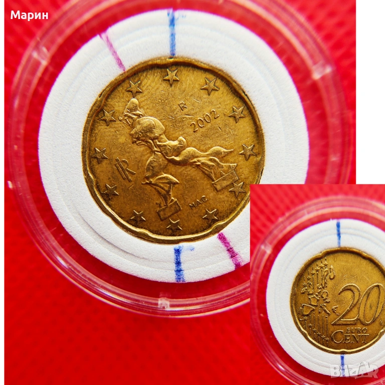 Монетата 20 евроцента 2002 г. е първата евромонета на Италия с този номинал с първата карта на Европа.