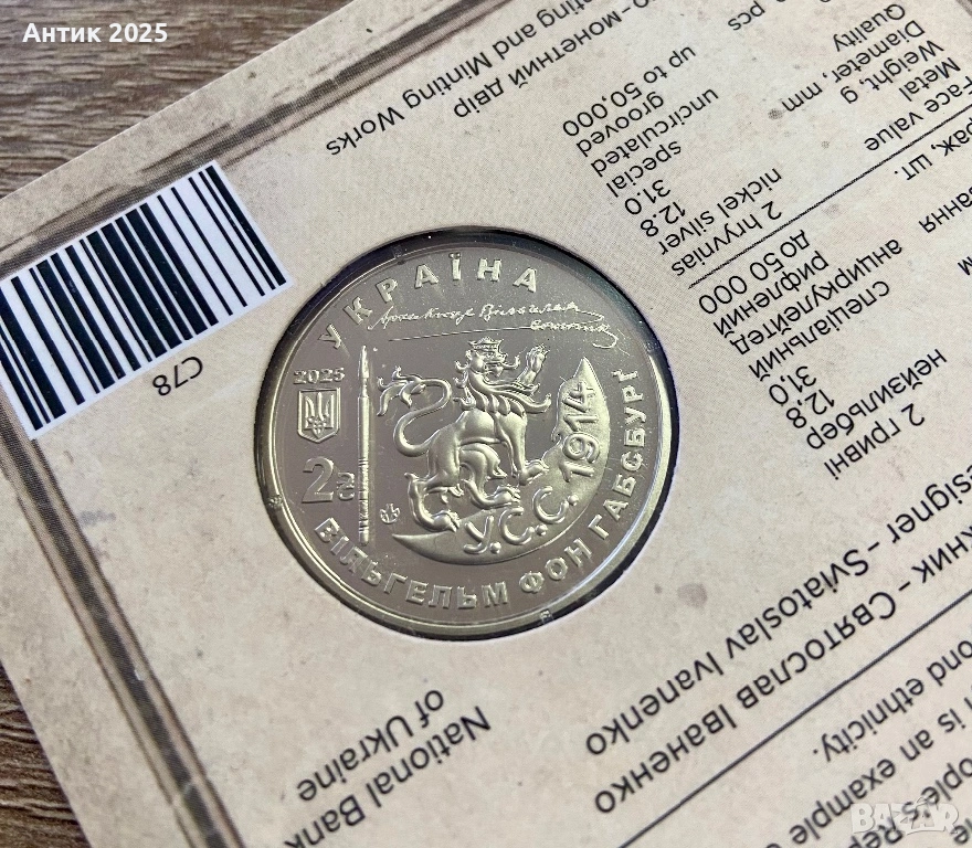 Паметна монета на Украйна 2 гривни „Васил Вишиваний (Вилхелм фон Хабсбург)“, 2025 г.