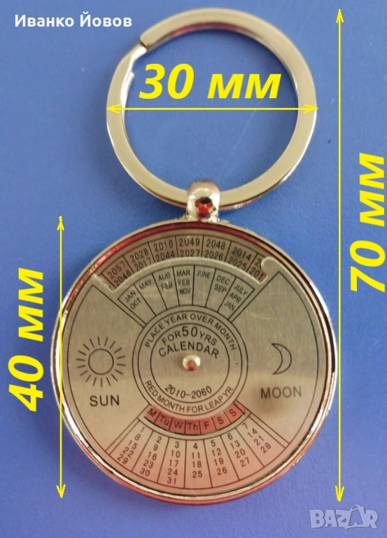 - Метален ключодържател с вечен календар от 2010 до 2060