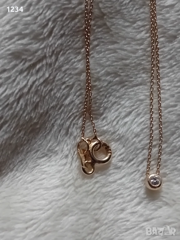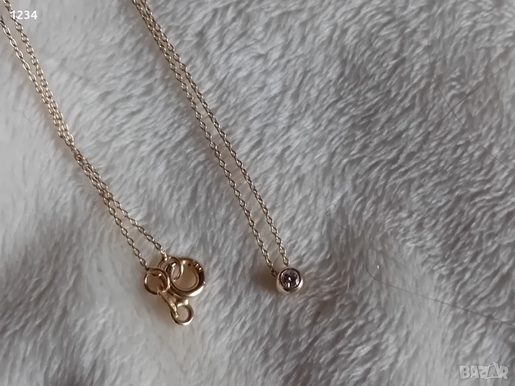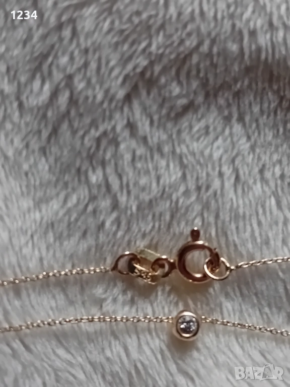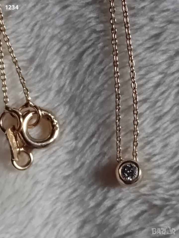 Златно колие с диамант 0,07к. → Обява 53455955