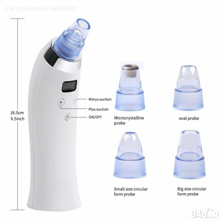 Представяме Ви вакуумен уред за почистване на лице Beauty Skin Care 0801 този уред за почистване на лице със засмукване е много ефикасен за почистване на лицето в дълбочина. Той премахва черните точки и най-трудните за отстраняване замърсявания, като в резултат кожата е професионално почистена, гладка и блестяща.