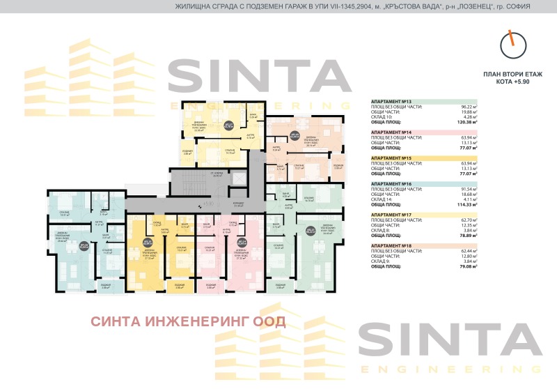 Обща квадратура на 2-стаен апартамент 17 : 78,89кв.м./ЧЗП 62,70кв.м./