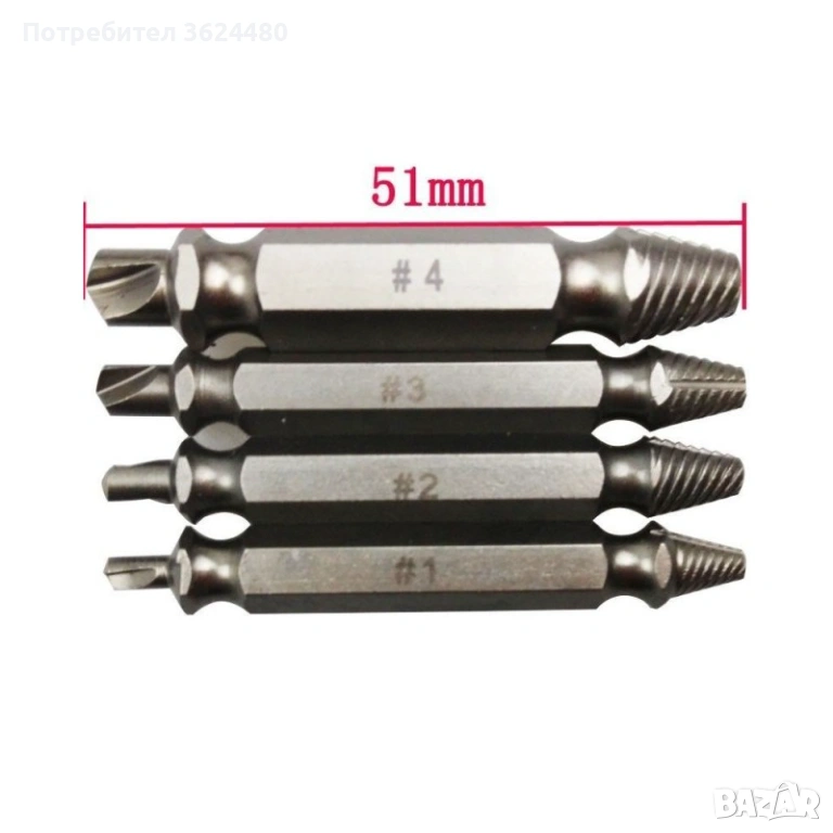 Комплект от 4 екстрактора с различни размери, предназначен за отстраняване на счупени винтове и щифтове. Инструментите са изработени от твърда инструментална стомана, която може да издържи на много високи натоварвания! Комплектът е изключително универсален, той се състои от 4 различни размера екстрактори, благодарение на които можете да свалите повредени или износени винтове с най-популярните размери! Цялото беше опаковано в естетична, пластмасова кутия!