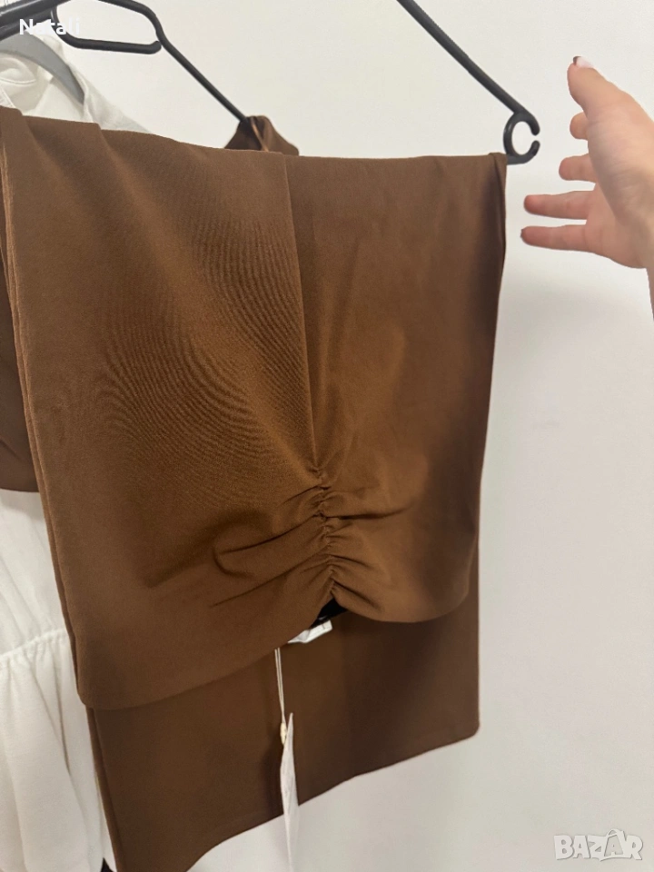 Продавам комплект кафяв . Закупен е от Zara . Чисто нов с етикетите . Размера е S , но мисля че отговаря на ХS . За град Варна може и лично предаване . Изпращам с преглед и тест по speedy u econt .