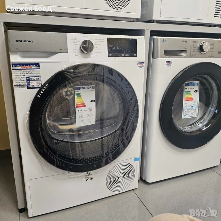 Термопомпена технология: Термопомпената система суши при по-ниска температура, като използва повторно топлия въздух за максимална енергийна ефективност. Така се постига значително по-нисък разход на ток и по-щадящо отношение към дрехите.