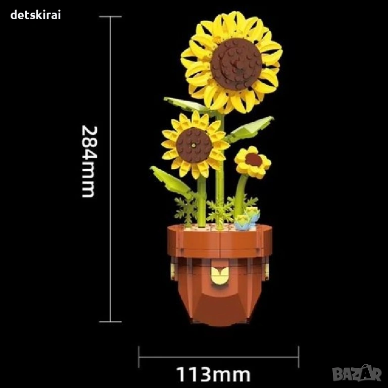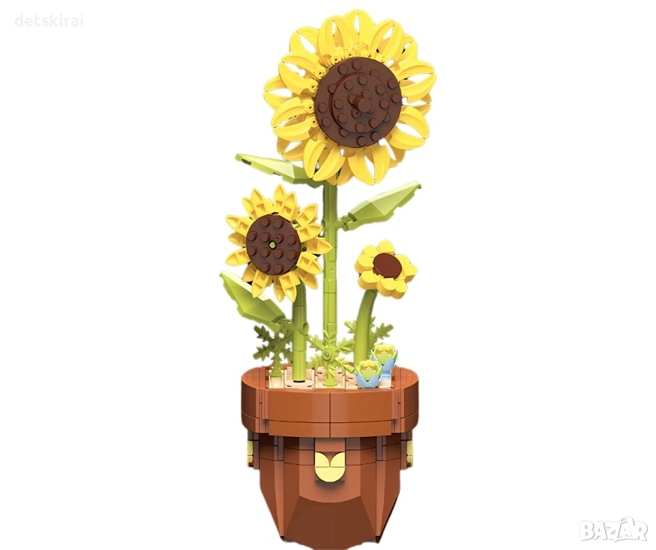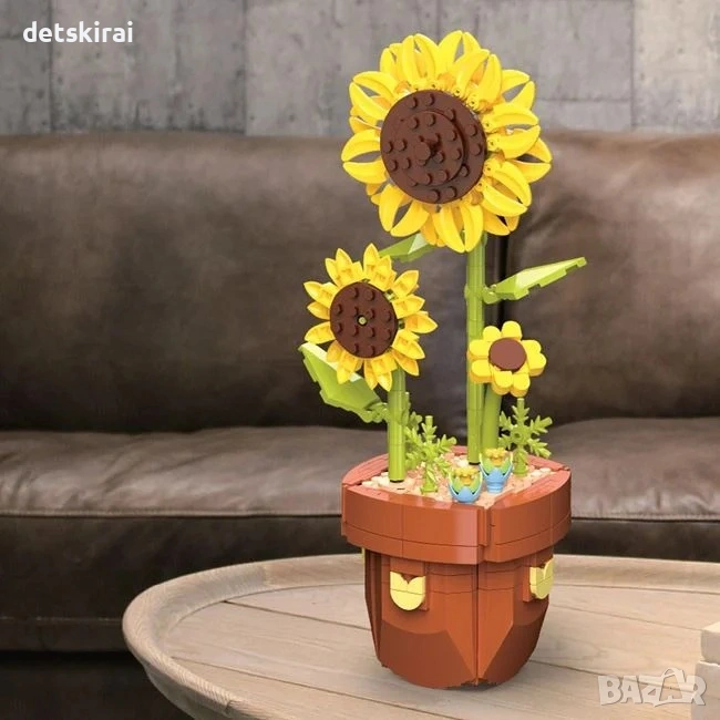Готовият модел е стилна и нестандартна декорация за дом, офис или детска стая. Конструкторът „Слънчогледи в саксия“ или „Орхидея“ е чудесен избор за подарък – креативен, образователен и впечатляващ.