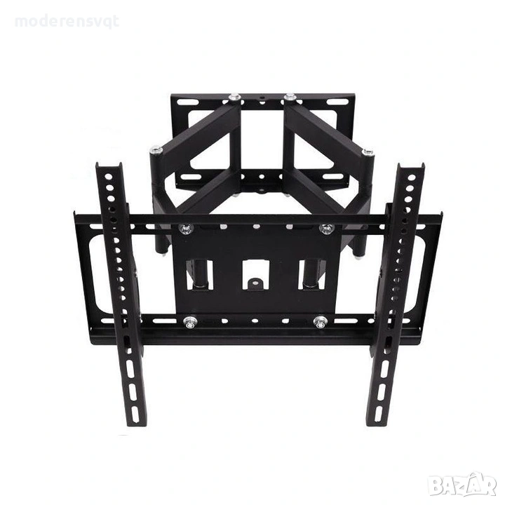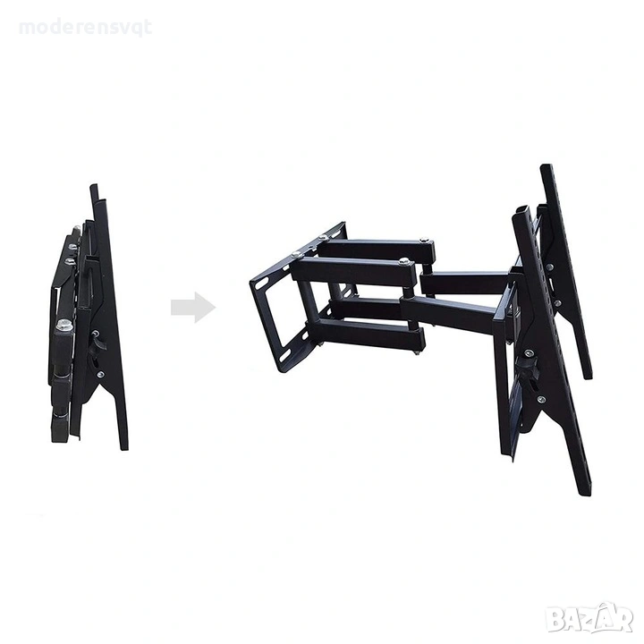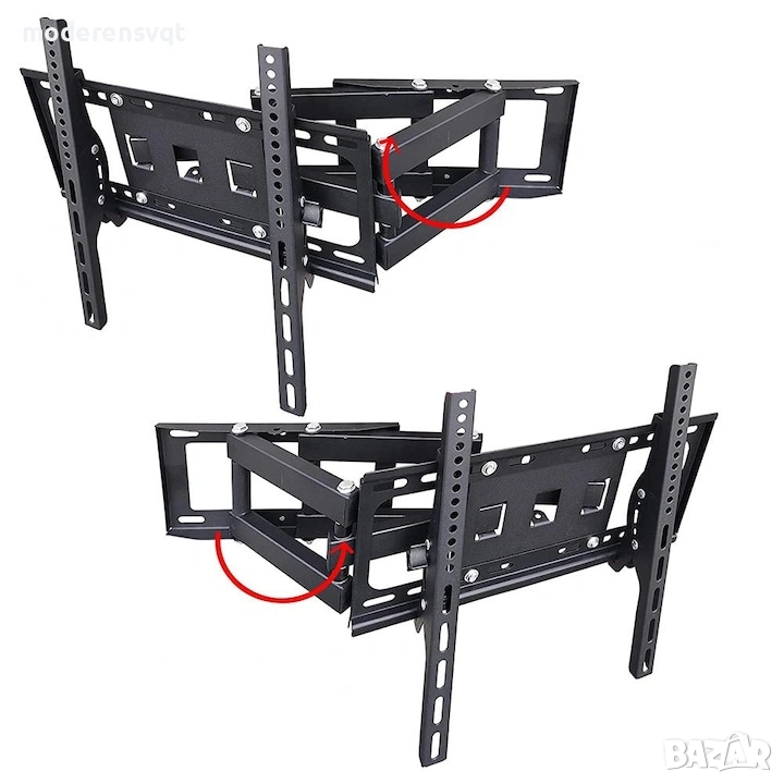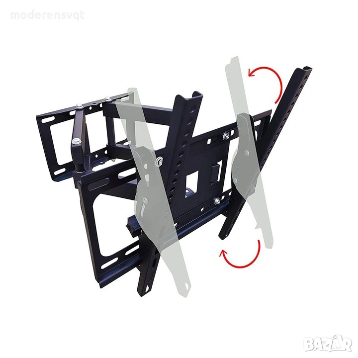 С накланящата се и въртяща се стойка можете да монтирате телевизора си здраво на стената. Скобата е практична за употреба, не заема много място и се монтира лесно. Може да се монтира на вертикална повърхност с помощта на винтовете, включени в комплекта. Може да се мести във всяка посока, така че телевизорът ви ще бъде видим от всяка точка на стаята. Подходяща е за дома, офисите или магазините.