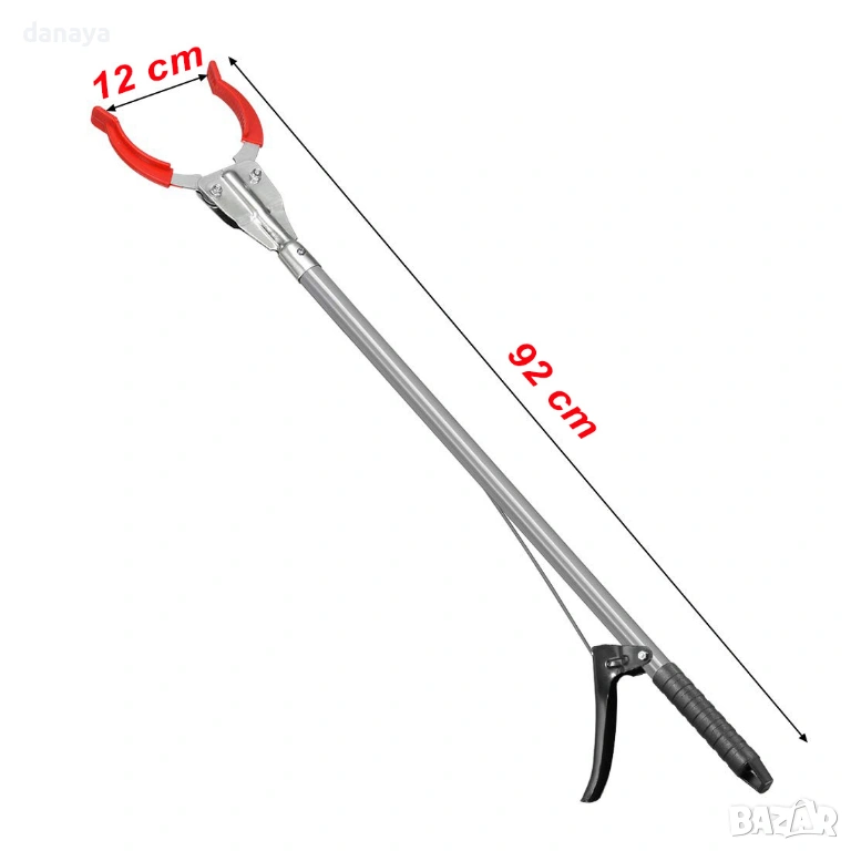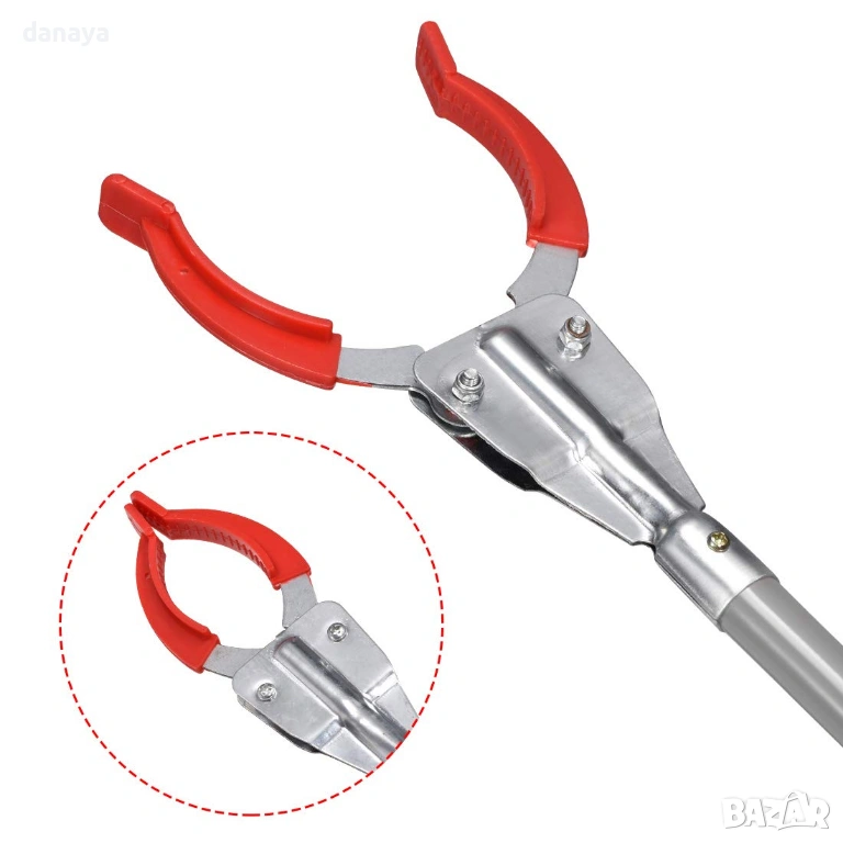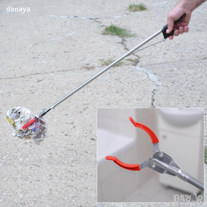 Щипка за събиране на отпадъци, смет, с дълга дръжка. Помощна щипка за хващане на предмети от разстояние. Всъщност тази щипка е наистина с широко приложение. Може да се използва като щипка за лесно достигане и сваляне на дрехи от високи закачалки и гардероби. Използвай я за захващане на предмети от труднодостъпни места, или като щипка за събиране на отпадъци без дори да ги докоснеш! Чудесно приложение и в природата – идеален инструмент за събиране на охлюви, за почистване на шадравани и малки басейни от листа и т.н.