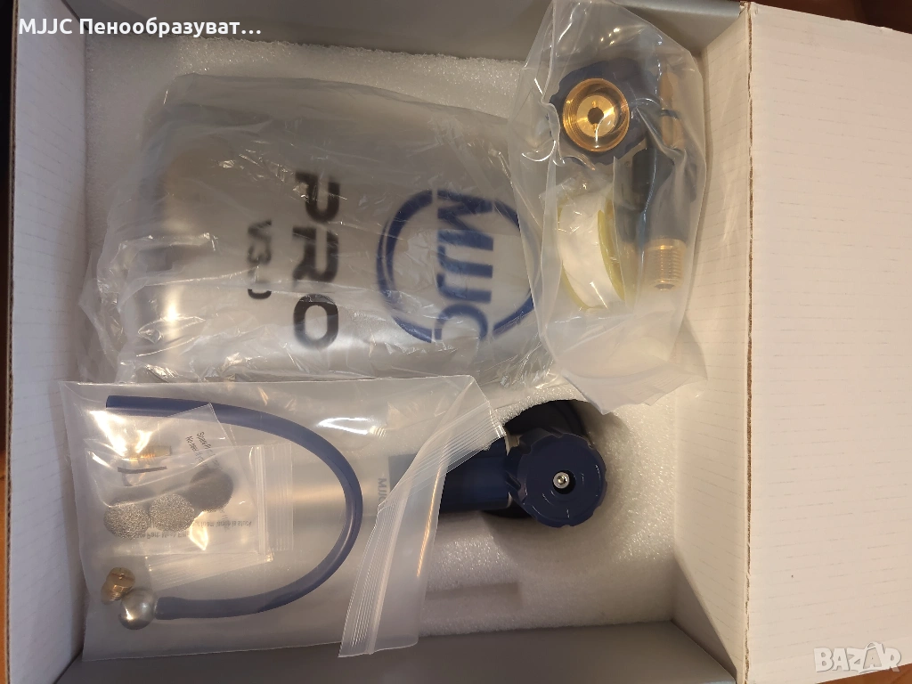 * MJJC Foam Cannon PRO V3.0 тяло* Бутилка 1.2L* Адаптер по избор* 3 дюзи (1.25mm монтирана + 1.1mm )* Резервни филтри * Тръба с филтър-тежест* Инструкция
