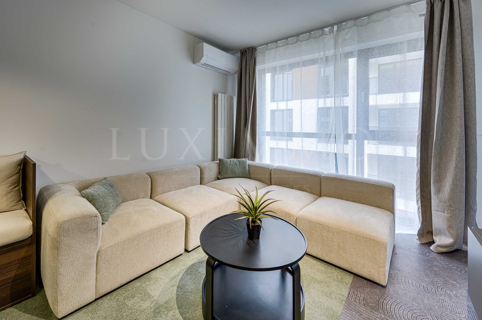 Апартаментът е реализиран по индивидуален проект всичко е ново, подбрано с внимание към детайла и усещане за елегантен минимализъм. Пространствата са балансирани и функционални.