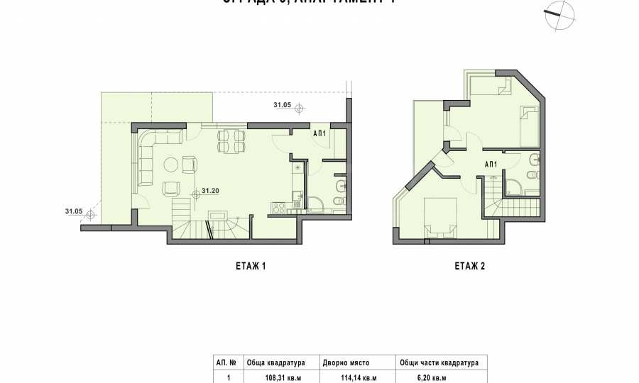 тристаен апартамент с обща площ от 108,31 кв.м, разположен на 1-ви и 2-ри етаж в Сграда 3, в бутиков комплекс с басейн в Созопол.