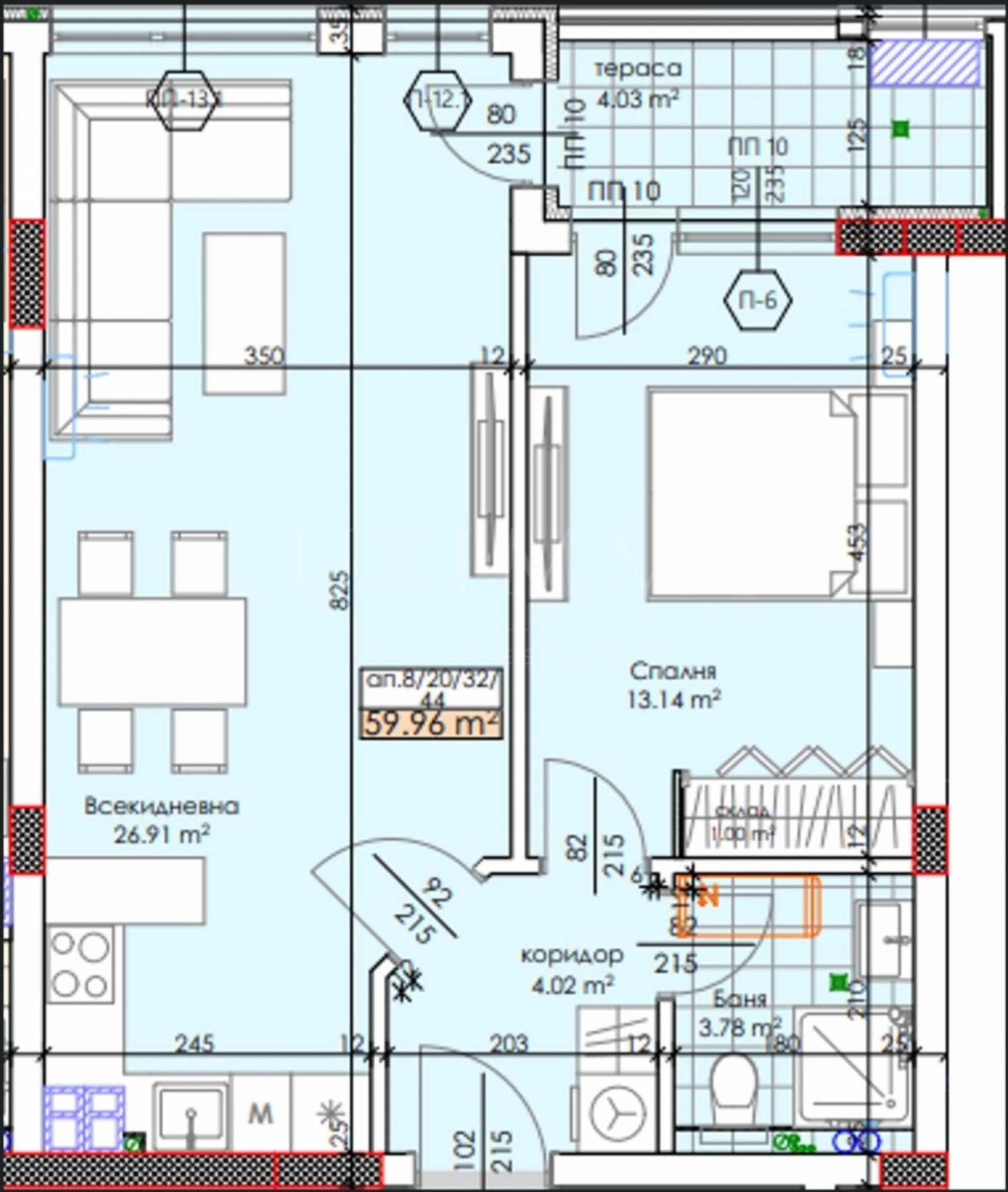 дневна с кухненски бокс 27 кв.м;