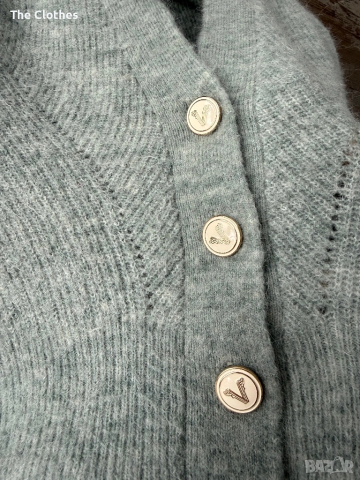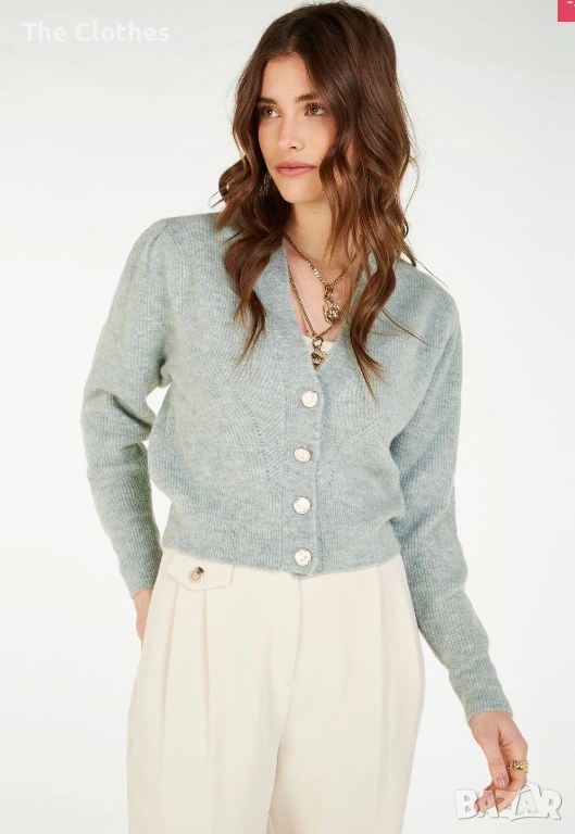 Слагам описанието от сайта им, аз по-добре не мога да до кажа - Florentine cardigan in the colour Stone Green Melange is made of a luxury alpaca quality, with slight stretch. The cardigan has a loose fit and is semi-cropped. The item also has various details, such as puffed sleeves, JOSH V branded enamel buttons and a ribbed structure.