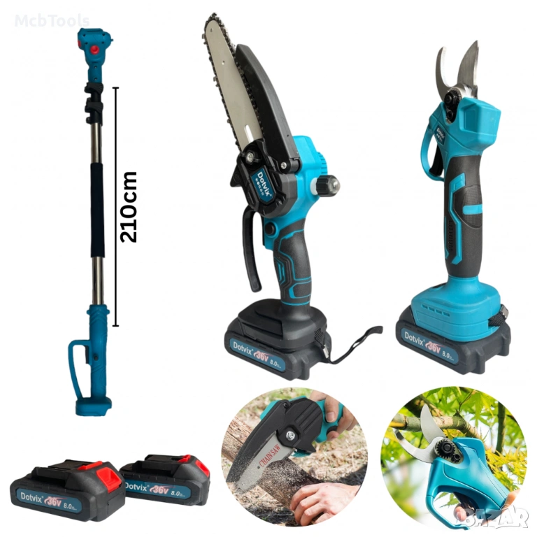 3в1 Акумулаторна Лозарска Ножица и Трион с Омасляване и телескопичен прът 36V 8AH Dotvix