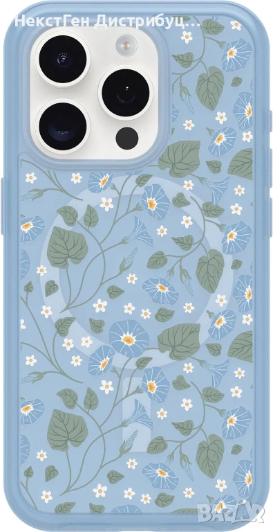 Продавам чисто нов оригинален OtterBox Symmetry Series кейс за iPhone 15 в цвят Dawn Floral Blue.