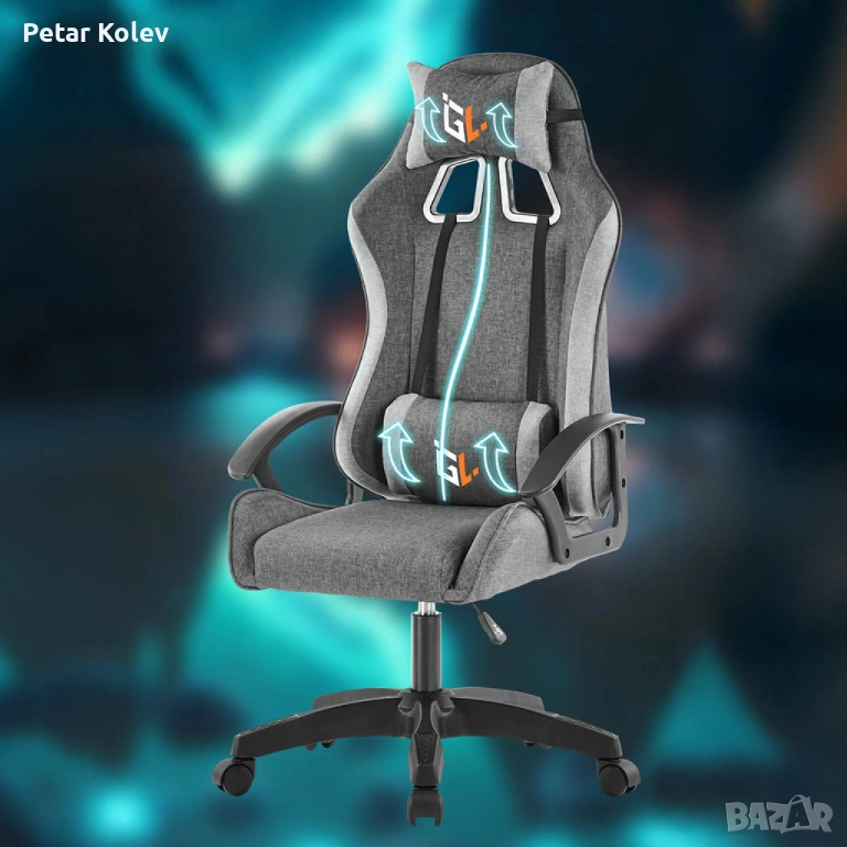 Ергономичен геймърски офис стол с лумбална и шийна опора – комфорт за игра и работа без умора