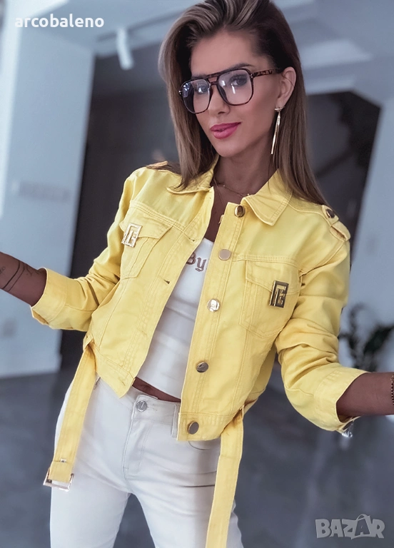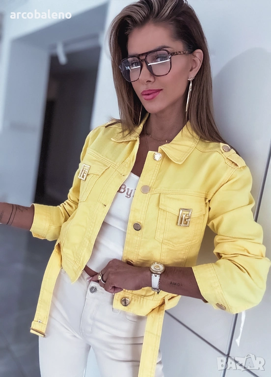 Дамско дънково яке със златисти аксесоари, 2цвята 2цвята