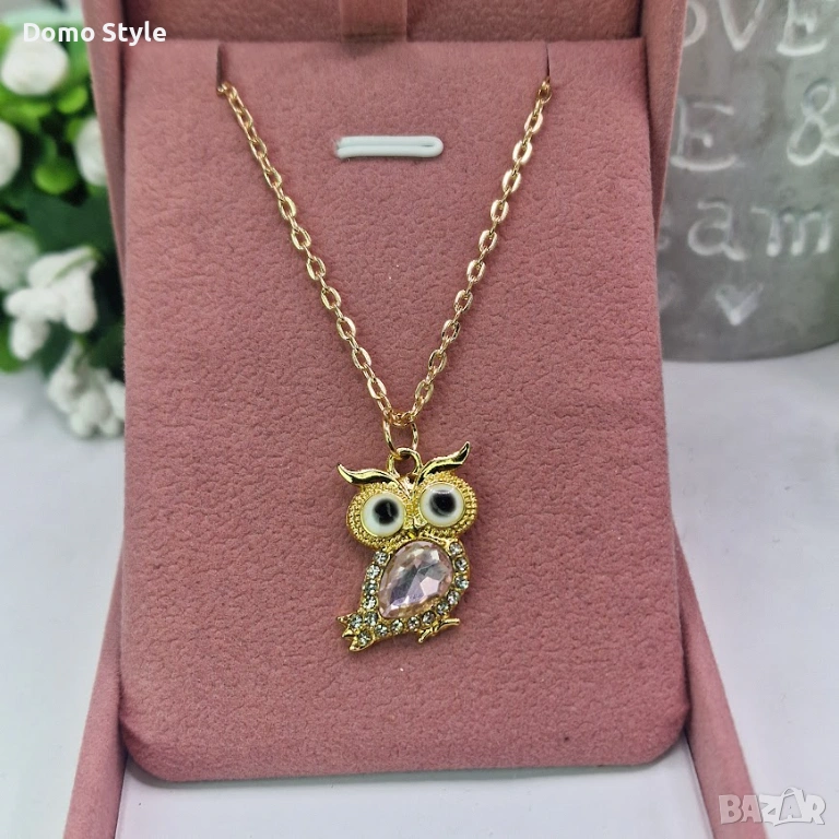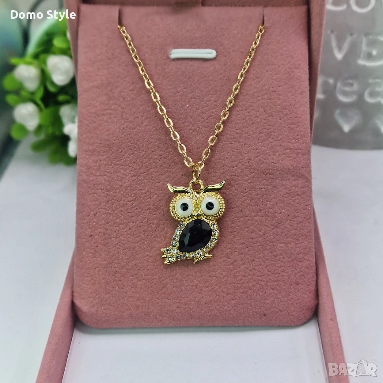 Колие Бухал 🖤 | златисто колие с камък → Обява 53457737