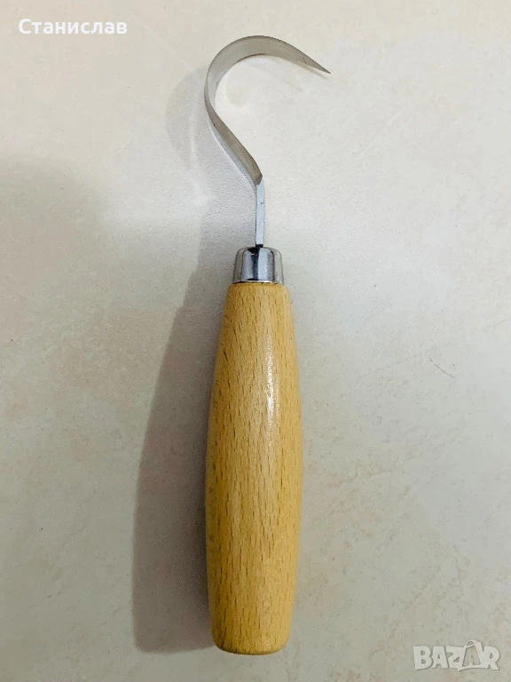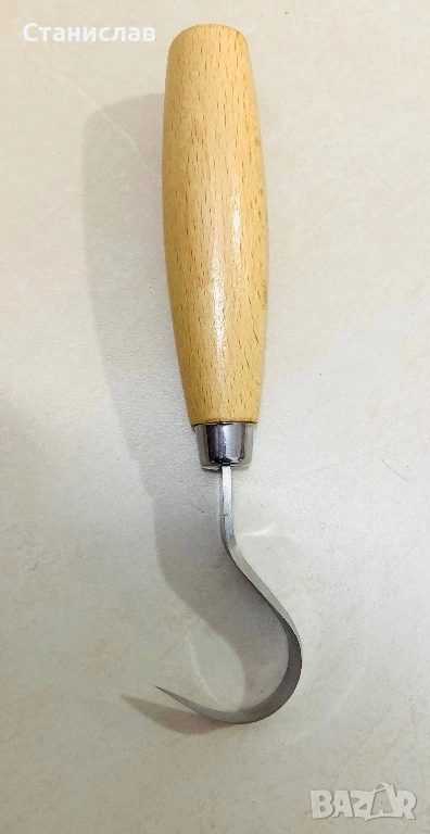 Предлагам извито длето от стомана за дълбане на дърво, на ръка. Подходящо примерно за направа на дървени лъжици, черпаци, купички, гърнета, и тем подобни. Въпрос на фантазия и изобретателност.