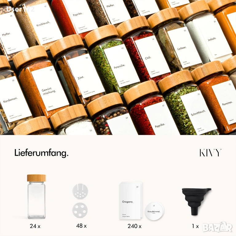 Продавам KIVY комплект буркани за подправки, идеален за подреждане и съхранение на всички любими подправки, билки и ароматни смеси в кухнята! Отлично решение както за дома, така и за подарък.