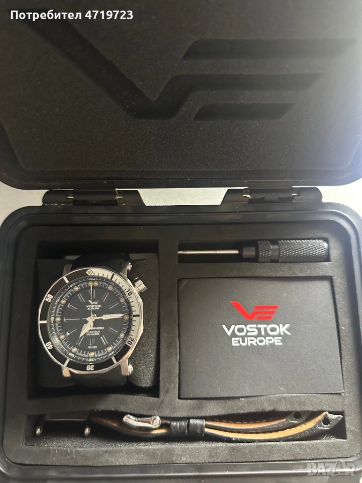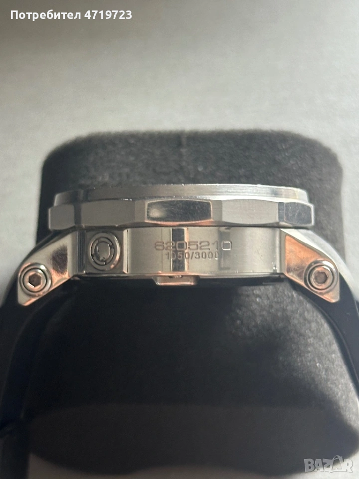 Часовникът е в перфектно състояние и идва с допълнителна кожена каишка, която въобще не е използвана, с кутията за конкретния модел, отверка и всички документи от момента му на закупуване, включително и касов бон от обслужване на механизма.