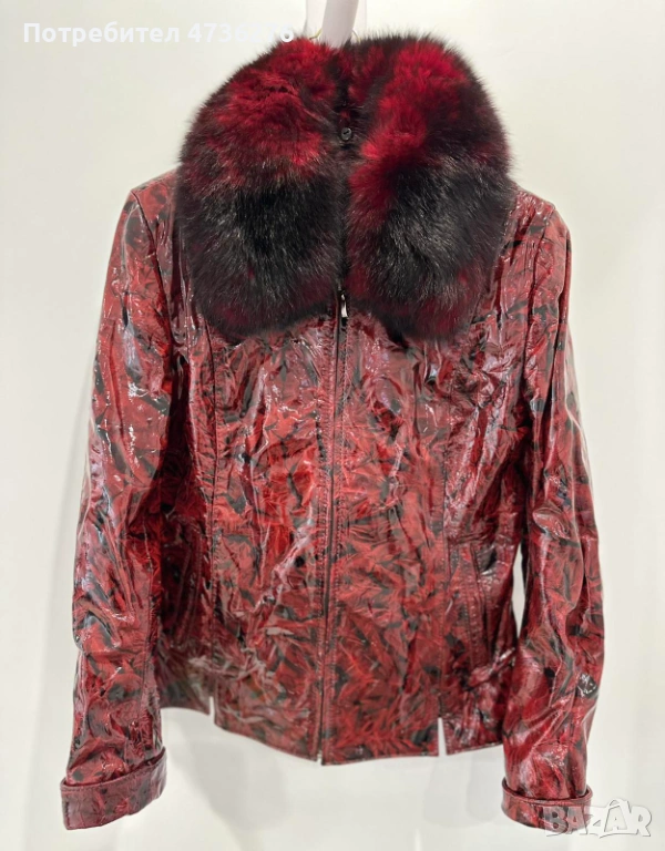 Продавам стилно дамско яке от естествена агнешка кожа с ефектна яка от естествена лисица. Моделът е къс, много елегантен и модерен, в красив червено-черен цвят, който се откроява и придава изискан вид.