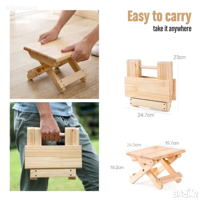 Мини сгъваем дървен стол, преносим за пътуване, за дома и градината НОВ → Обява 53458299