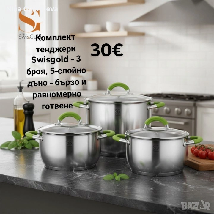 Комплект тенджери Swisgold - 3 броя, 5-слойно дъно - бързо и равномерно готвене → Обява 53458366