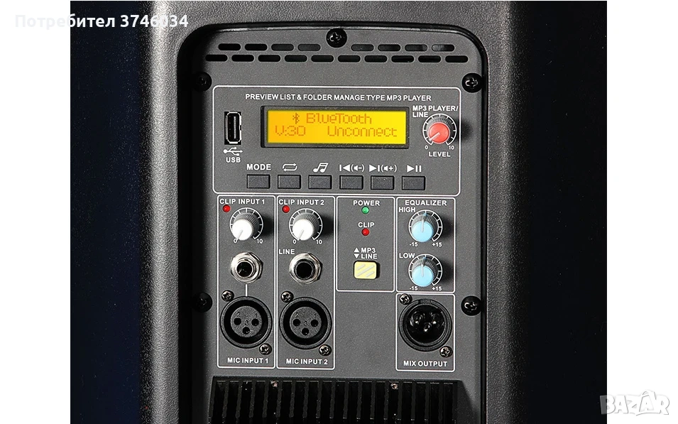 Вграденият дисплей показва заглавието на песента и името на изпълнителя на възпроизвежданата песен, което улеснява работата в условия на недостатъчно осветление. Бутоните под дисплея управляват MP3 плейъра и DSP режима на колоната (USB, Bluetooth, миксер).
