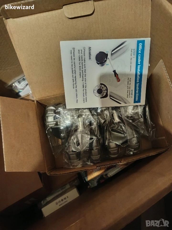 Комплект от 5 колелца за офис столове, гладко търкалящи се, твърд под – 11x22 мм НОВИ → Обява 53458847