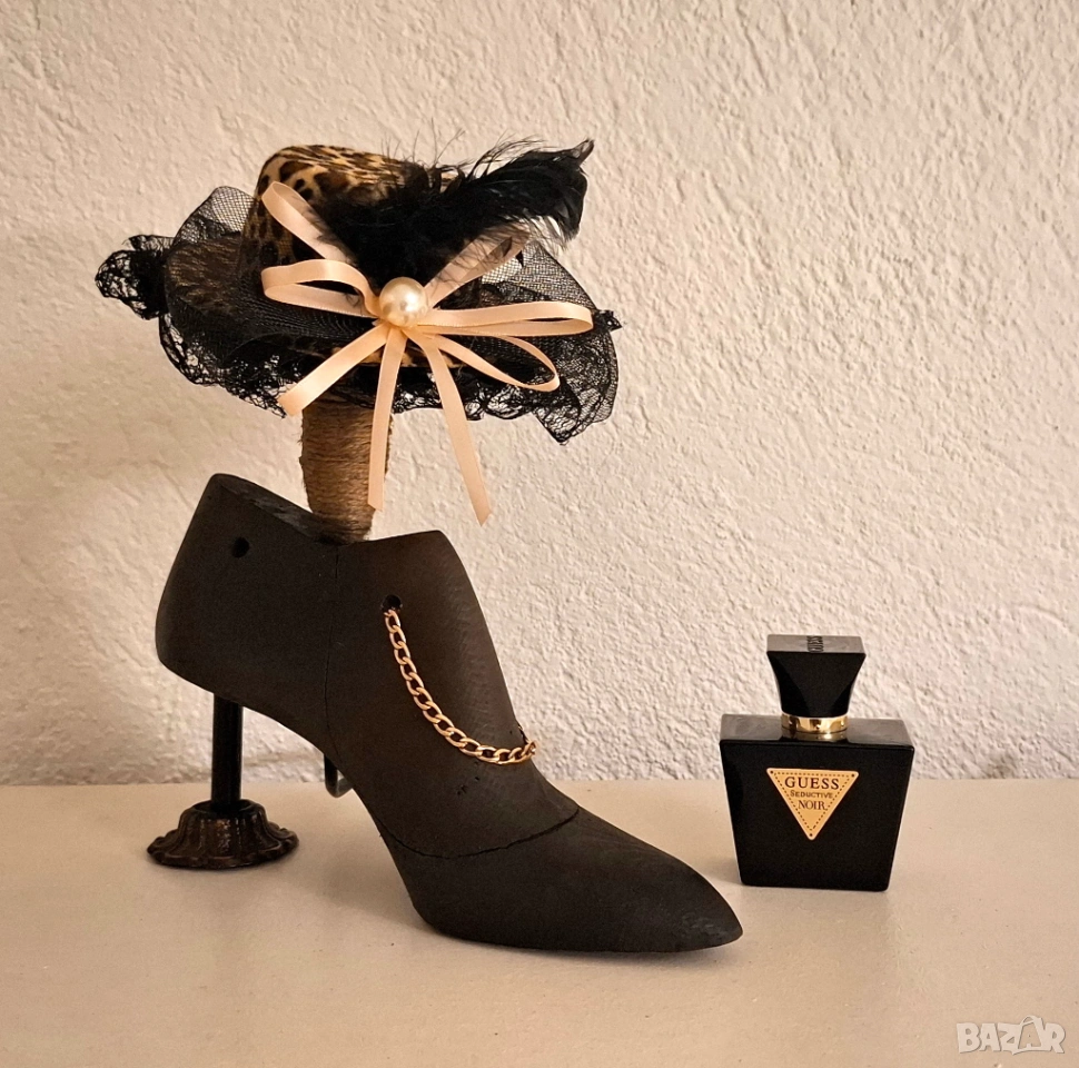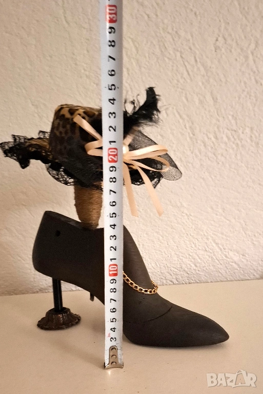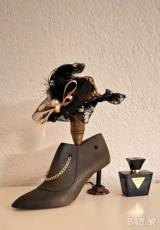 Тази авторска настолна лампа е създадена от автентичен стар дървен калъп за дамска обувка – предмет с история, преобразен в дизайнерски обект с характер и присъствие.