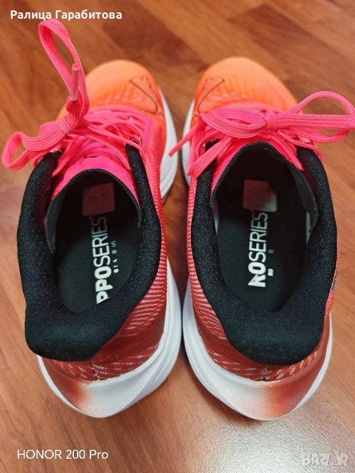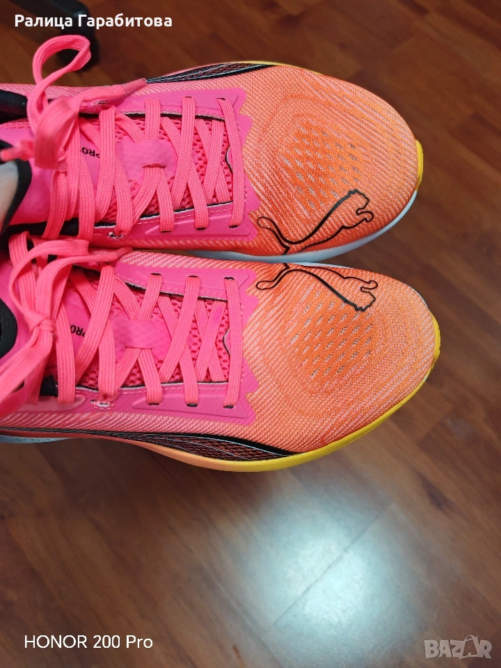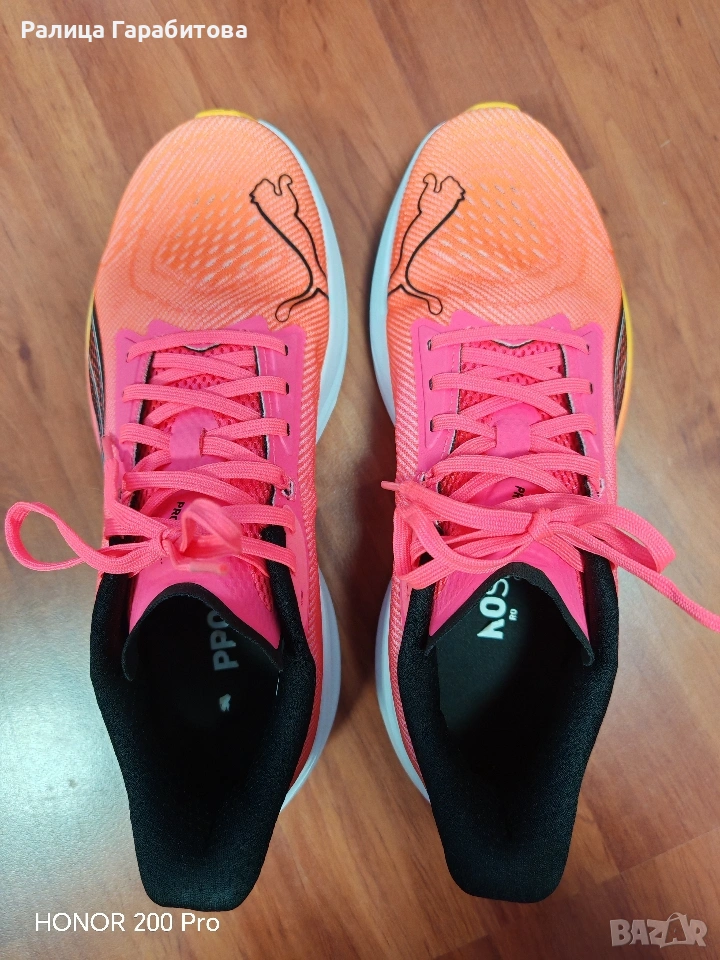 Продавам оригинални маратонки Puma, като нови са, без забележки. Три пъти са обувани за кратко. Поръчах си ги онлайн, защото много ги харесах, но не уцелих точния размер, големи са ми и изглежда смешно. Иначе подметката е уникално удобна, лека и мека. Размер на стелката по етикет - 25 см.