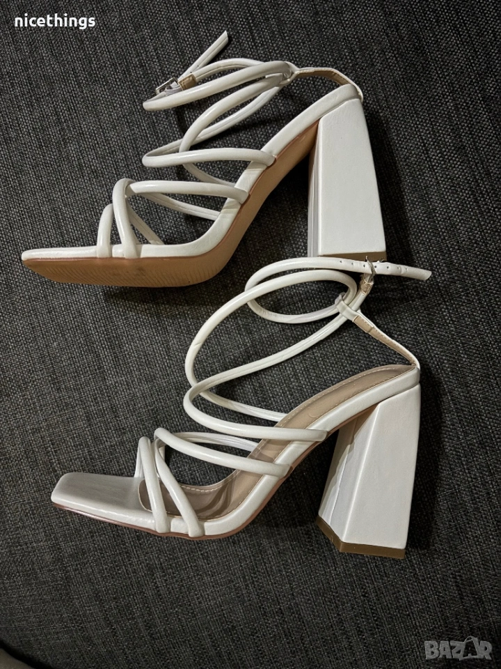 Нови бели сандали на ток → Обява 53459246