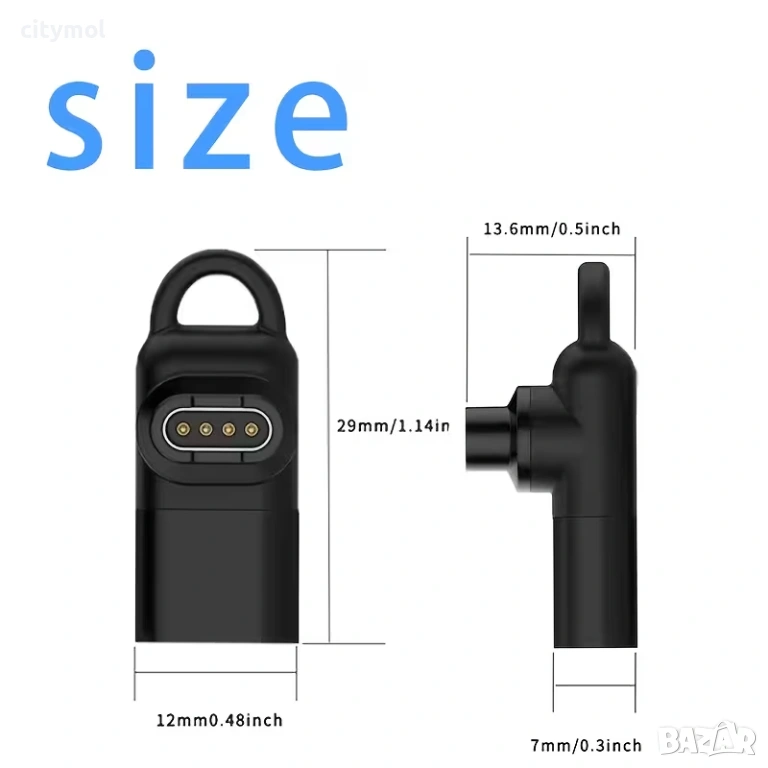 - Преходник от Type-C (женска) към букса за зареждане на Smart Watchr Garmin, с този преходник може да използвате всеки Type C кабел за зареждане на Вашия часовник Garmin.
