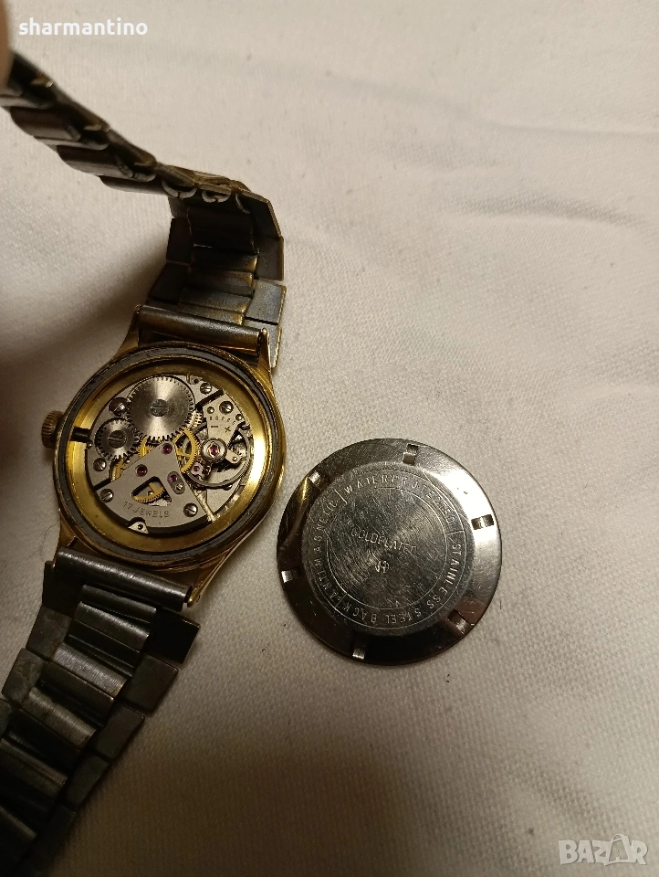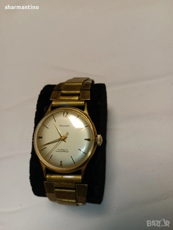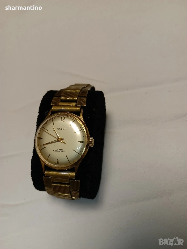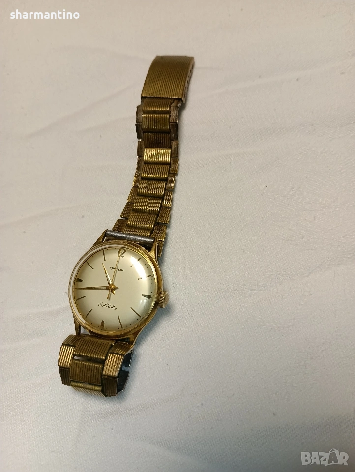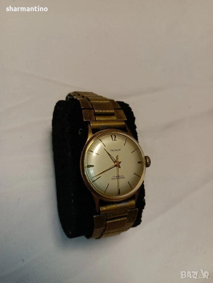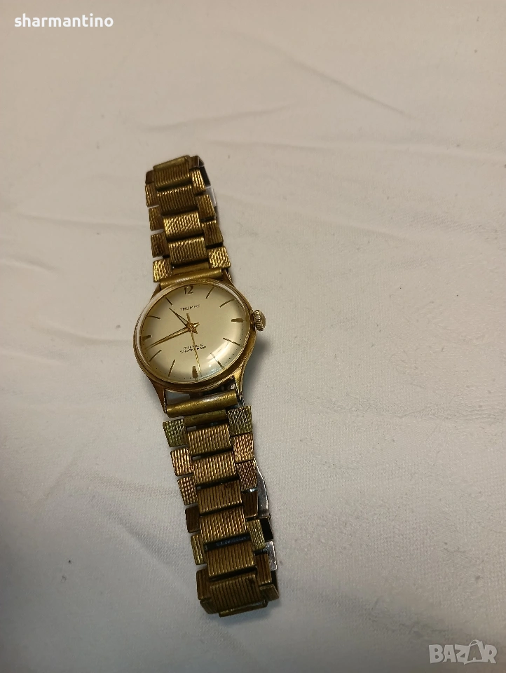 🏆 Продавам оригинален автентичен работещ старинен позлатен механичен часовник Trumpf.