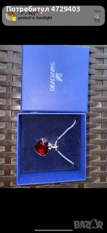 Колие Сваровски червена сърце , снимка 1 - Колиета, медальони, синджири - 53459917 1/1