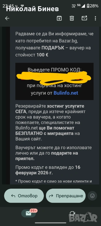 Ваучер за хостинг , снимка 1 - Друго - 53460053 1/1