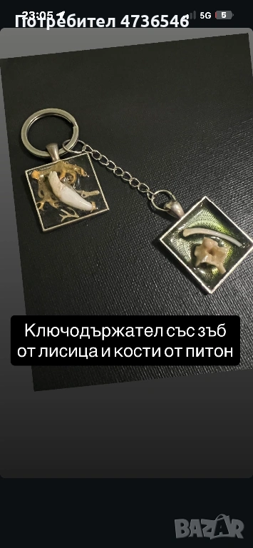 Ключодържател със зъб от лисица и кости от питон → Обява 53460869