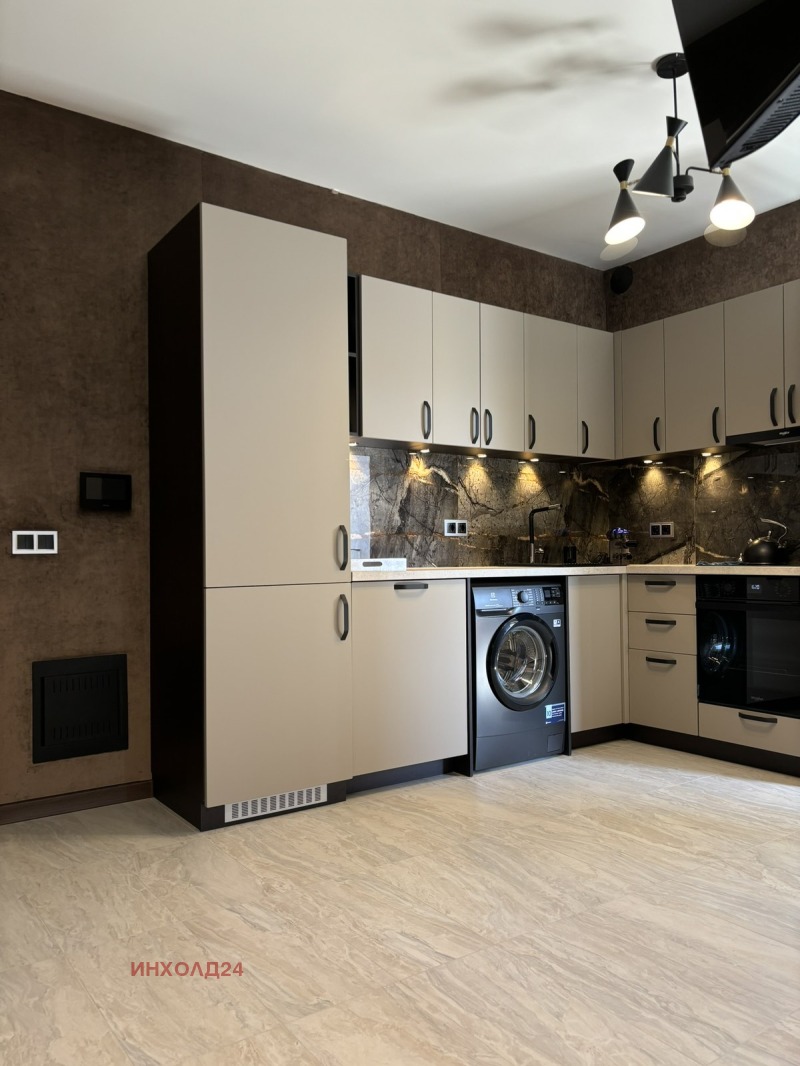 Напълно завършен по Интериорен проект включващ Дизайнерски детайли и много практичност при изпълнението, с включен пълен инвентар- кухненски уреди- съдомиялна, пералня, вградена фурна модел 2024, котлони четворка, тостер, мини прахосмукачка за плотове, регулярна прахосмукачка и други.