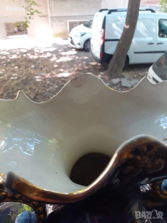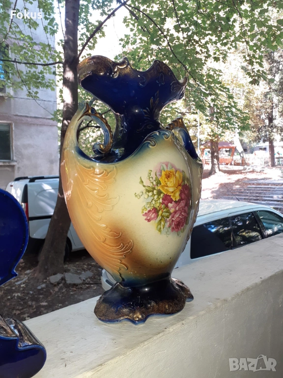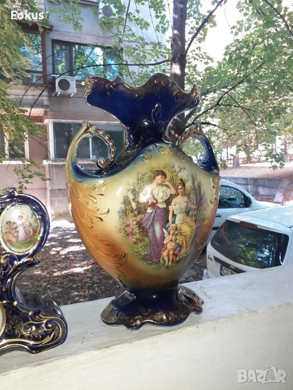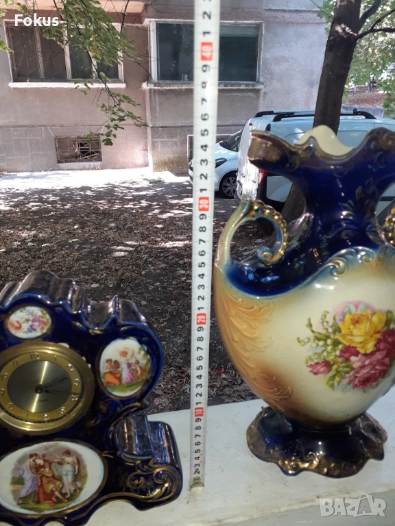 Страшно красив кобалтово син порцеланов часовник с две вази.