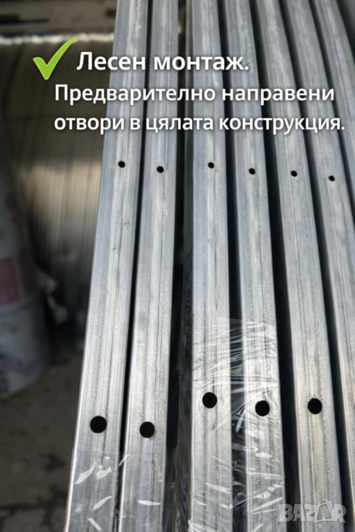Конструкцията е изработена от поцинкован стоманен профил 40×20 мм и няма нито една заварка. Всички елементи са машинно огънати и сглобяеми, което осигурява висока здравина, прецизност и дълготрайност във времето.