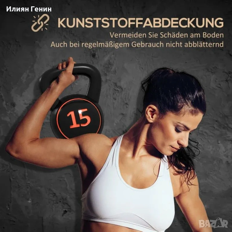 Пластмасово покритие: Предпазва пода от повреди и предотвратява износването на пудовките, идеални за домашни тренировки.