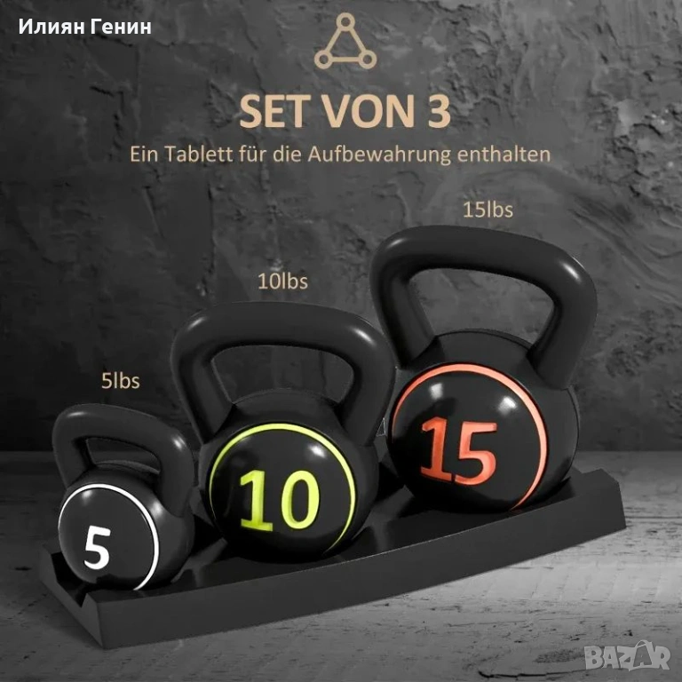 ✔ Комплект от три пудовки с тежести 2,2 кг, 4,5 кг, 6,8 кг за разнообразни тренировки