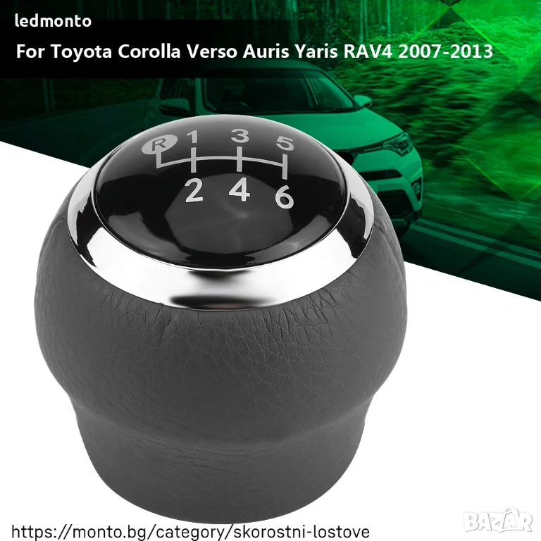 Топка за скоростен лост 6 степени, подходяща за Toyota Corolla, Verso, Auris, Yaris, RAV4 (2007–2013). Изработена от висококачествена черна изкуствена кожа с ергономичен дизайн за максимален комфорт и стил в интериора. Директна замяна без нужда от инструменти – просто сваляте старата и поставяте новата топка. OEM пасване, устойчивост на износване, лесна поддръжка и дълъг живот. Подходяща за ежедневна употреба, не се нагрява и не се износва лесно. Идеална за освежаване на салона или при смяна на повредена топка.