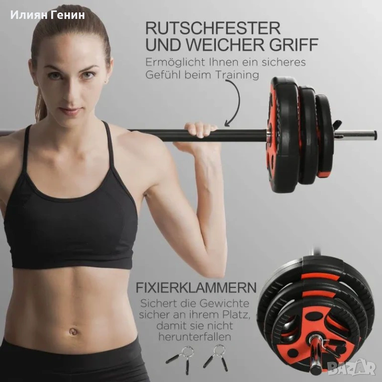 Комплект щанги SPORTNOW 20 кг, включително 6 тежести, 2 x 5 кг, 2 x 2,5 кг, 2 x 1,25 кг, противоплъзгаща се щанга, черно+червено - 70.00 €.