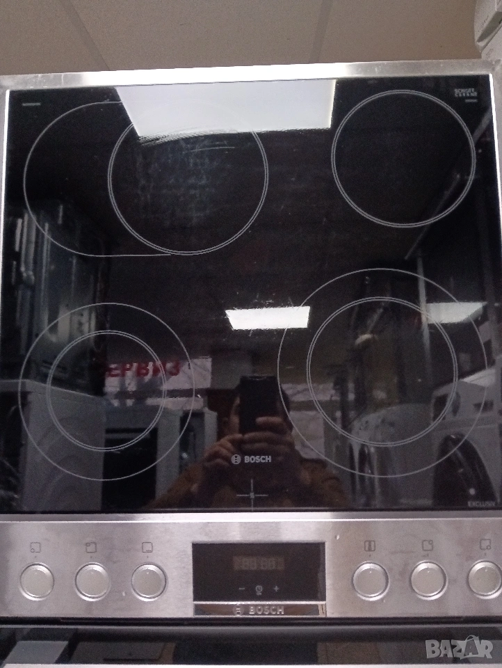 Иноксова печка за вграждане с керамичен плот Бош Bosch с две години гаранция!