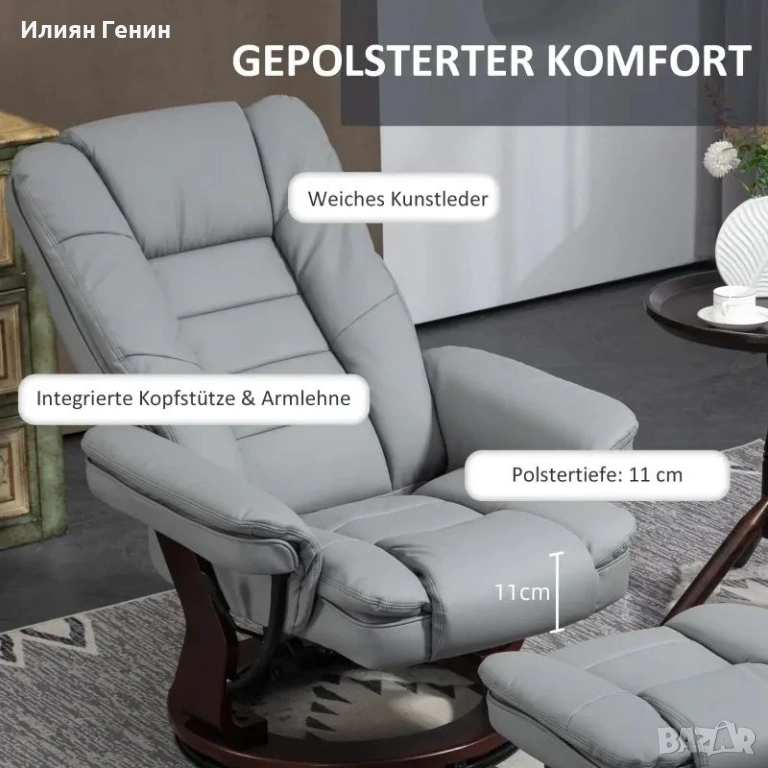 ✔ Разтегателен фотьойл с модерен дизайн и табуретка, която добавя допълнителен модерен щрих към вашия интериор